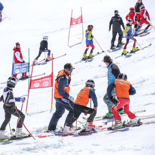 esf Belle Plagne en collaboration avec esf Bellecote gère le stade du Dahu au-dessus de Belle Plagne. L’ensemble du cours se déroule dans cet espace sécurisé vis-à-vis des autres utilisateurs et dédié aux compétiteurs. Du matériel de chronométrage est présent pour pouvoir évaluer les performances.